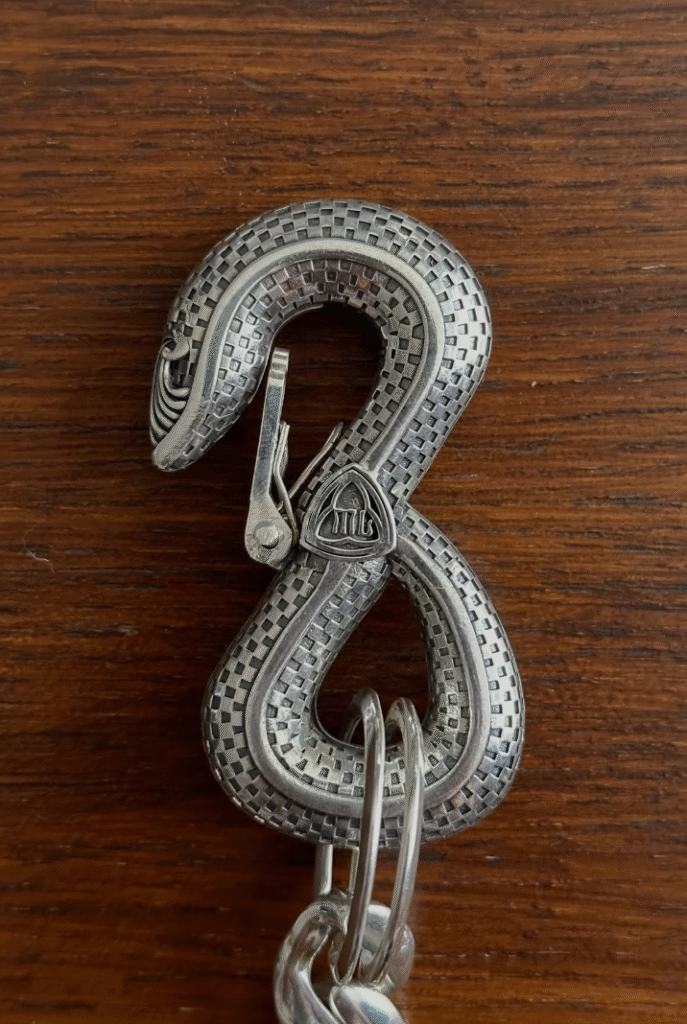 There are plenty of buildings that inspire me. For example, this wallet chain I’ve got here now. I was looking for mouldings to incorporate into my designs and I saw that trefoil on the church just behind Marylebone high street.